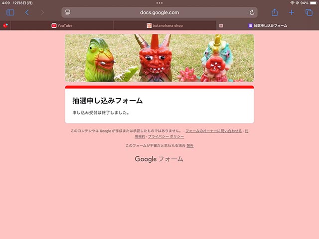 初めて「ぶたのはな」さんのソフビ抽選に応募する。見事に落選。