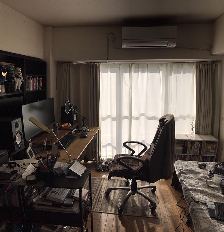 位置も変えてみた。机の配置も変更してみる。ちょっとモニターに光が当たって見にくいか・・。