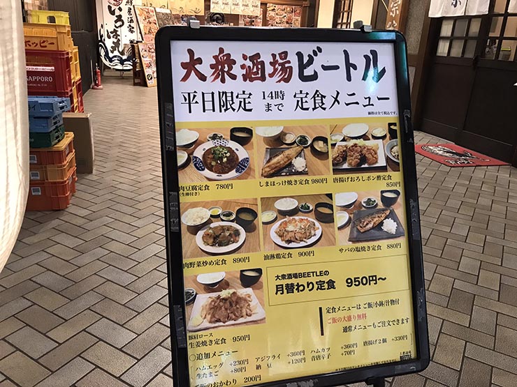 次回は肉豆腐定食780円とアジフライ単品(350円)と生中(450円)で1580円セットでいってみようか。