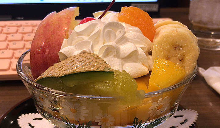 駅地下の喫茶店で仕事しながらパフェ。お味は普通。