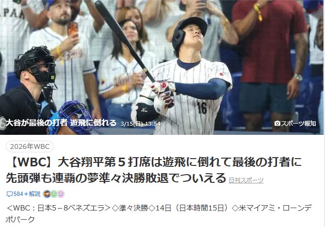 WBC、日本負けた〜。